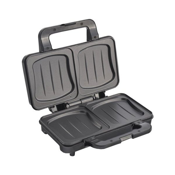 Потужність 900 Вт, насадка для 2-х великих сендвічів, антипригарне покриття пластин, корпус: нержавіюча сталь, термостат, індикатор нагріву, індикатор роботи, ручка, яка не нагрівається, термостат