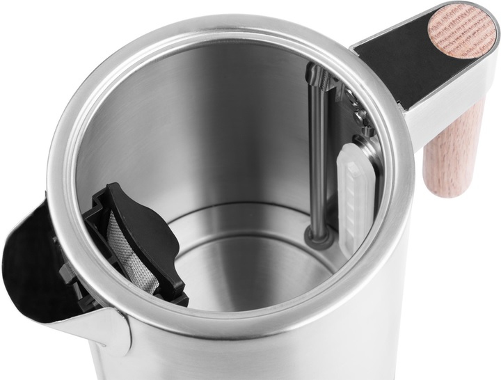 Об'єм 1,7 л, потужність 1850 - 2200 Вт, матеріал корпусу - нержавіюча сталь, функція автоматичного відключення: при включенні без води, знімний та миючий фільтр від накипу, захист від перегріву.