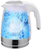 Об'єм 1, 7л, потужність 2000 Вт, скритий нагрівальний елемент, індикатор рівня води, поворот на підставці 360 градусів, захист від перегріву, автовимкнення при закипанні води. Корпус - скло. Колір - білий. Гарантія 12 місяців.