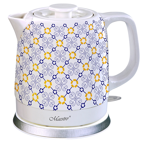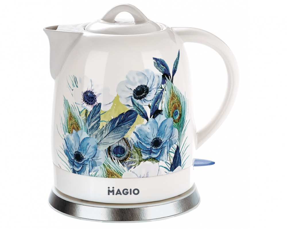 Чайник MG-973 розрахований на 1,5 л, поєднує в собі стильний дизайн з гарною якістю і надійністю. Корпус віготовоен з екологічно чистого матеріалу - кераміки, завдяки цьому вода зберігає свої природні властивості, не містить сторонніх запахів і неприємних присмаків. Кераміка зберігає набагато довше температуру води, а це значить, що його рідше доведеться включати.