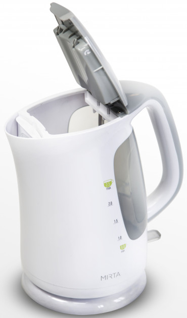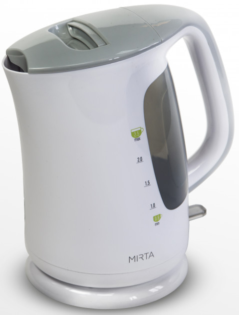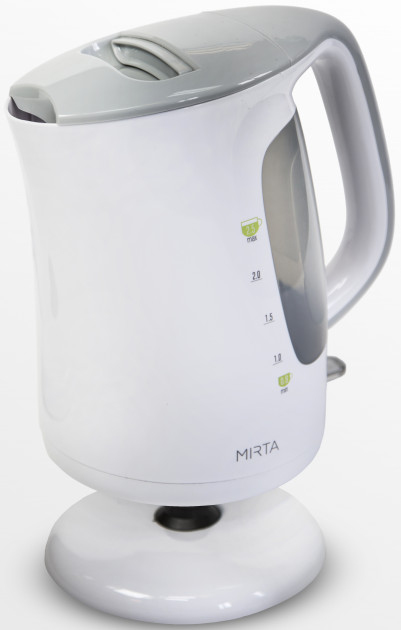 Корпус електричного чайника виконаний з міцного, але легкого екологічно чистого пластика Mirta KT-1025.