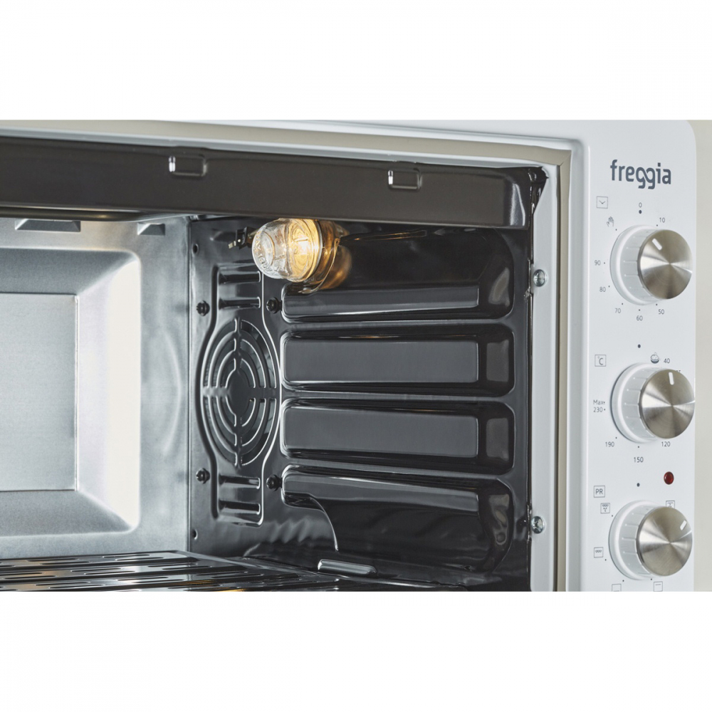 Компактна електропіч Freggia потужністю 1300 Вт забезпечує оптимальний результат приготування.