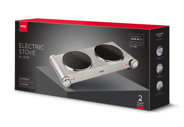 ERGO HL-2208 - це відмінна знахідка для господинь, які надають перевагу зручному та швидкому приготуванню улюблених страв, адже тепер не потрібно турбуватися про підбір спеціального посуду під тип варильної поверхні. Технологія Hi-light забезпечує рівномірне і максимально швидке нагрівання конфорки, а про високу температуру просигналізує підсвічування нагрівального елемента червоним кольором. Відмінний смак їжі забезпечать дві потужні конфорки потужністю 1200 Вт з можливістю надточного механічного регулювання температурних режимів без побоювань, що пригорять продукти харчування або зіпсується посуд. Забудьте про громіздкі газові або електричні аналоги та насолоджуйтесь неймовірним смаком улюблених страв разом із плитою ERGO HL-2208.