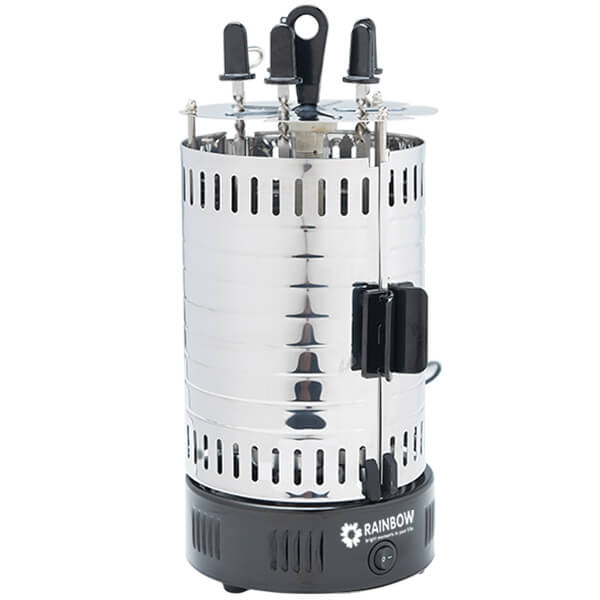 Електрошашличниця містить собою комплексний прилад для обробки м'ясних продуктів. Якість приготовленого шашлику не відрізняється від м'яса, приготованого традиційним способом на вугіллі багаття. Обертання чашечок для збору жиру відбувається за допомогою електромеханічного редуктора і електрошашличниця працює абсолютно безшумно. П'ять кручених шампурів з нержавіючої сталі, з ручками з бакелітового пластика, зручно вставляються і знімаються у верхньому кондуктора, виключаючи можливість обпектися при роботі з електрошашличницею.