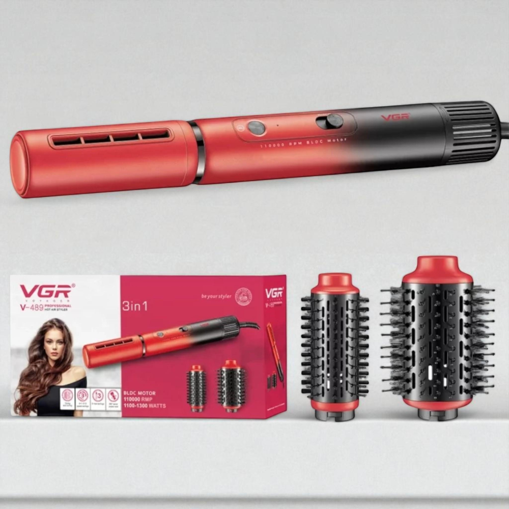 Фен-щітка VGR V-489 у стильному червоно-чорному дизайні — це універсальний інструмент для щоденного професійного догляду за волоссям. Пристрій поєднує в собі функції фена, щітки та плойки, забезпечуючи швидку сушку та ефективне укладання волосся. Завдяки потужності до 1300 Вт і трьом температурним режимам з регульованим повітряним потоком, стайлер легко адаптується до різних типів волосся — від тонкого до густого.