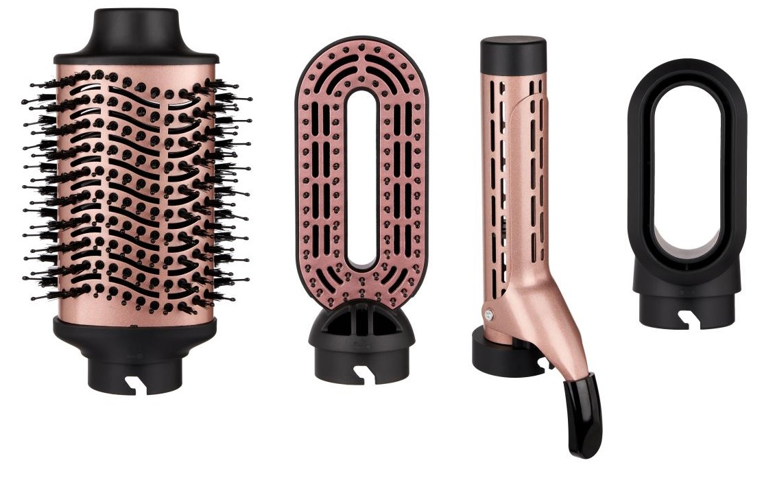 Потужність: 1100 Вт, 2 температурні режими та режим холодного обдуву, 4 змінні насадки з турмаліновим покриттям: щітка з щетинками діаметром 38мм (не обертається), щітка діаметром 50мм (обертається). Функція двонаправленого обертання, та світловий індикатор роботи, захист від перегріву.