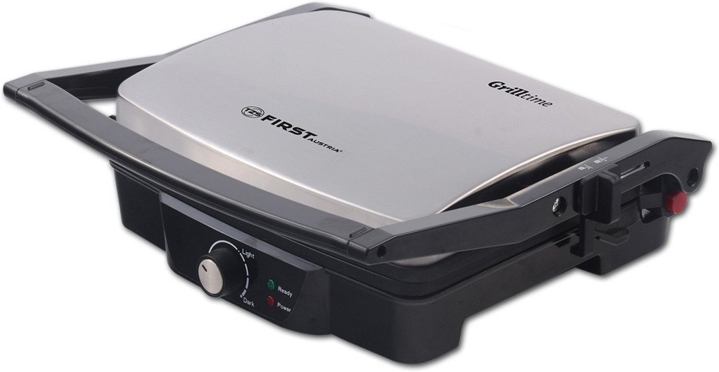 Гриль First FA-5344-1 - це пристрій з притискної конструкцією. Будова цієї техніки має на увазі розміщення їжі між двома пластинами, які затискають для отримання правильної термічної обробки і красивих підсмажених смуг. Така конструкція дає можливість чудово обробити м'ясо, рибу, овочі, зробити бутерброди, хот-доги, закуски.