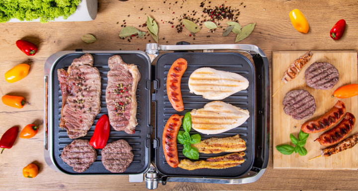 Гриль відкривається на 180 °, що дозволяє готувати більше продуктів одночасно.