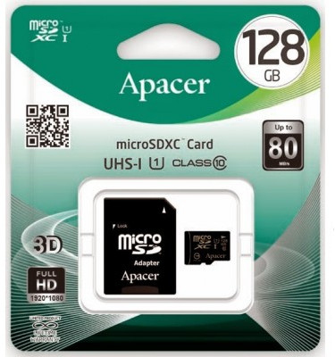 Карта пам'яті Apacer MicroSD 128 Gb Class 10 (AP128GMCSX10U1-R) - карта пам'яті стандарту microSDHC від компанії Apacer має обсяг 128 ГБ і клас UHS-I (Class 10). З її допомогою ви зможете записувати великі потоки інформації, в тому числі відео Full HD в реальному часі. Знімайте і зберігайте ще більше фотографій високої якості і відео.