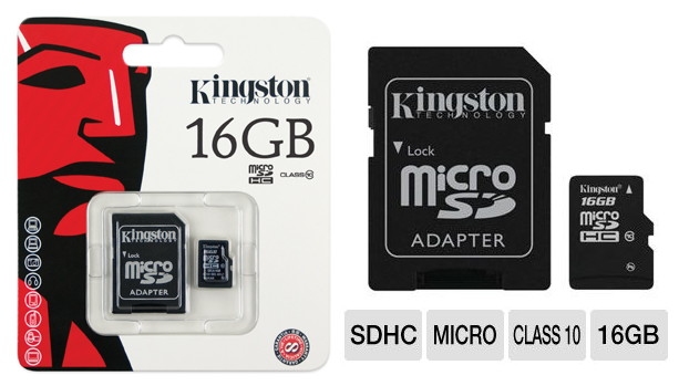 Карта пам'яті Kingston microSD 16GB Class 10 + SD адаптер