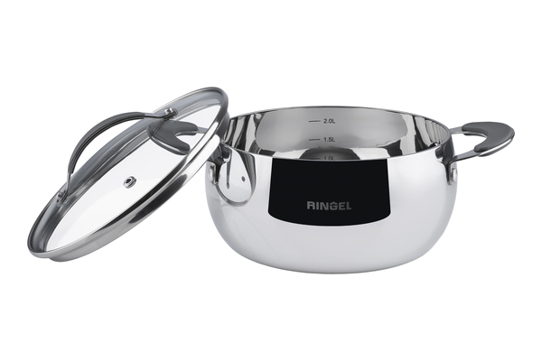 Каструлі серії Be Creative від RINGEL IQ з нержавіючої сталі виконані за технологією TRI-PLY. Завдяки цьому в них можна домагатися ефекту томління страв. Бездоганна зовнішня дзеркальна поліровка і сферична форма впишеться в будь-який інтер'єр.