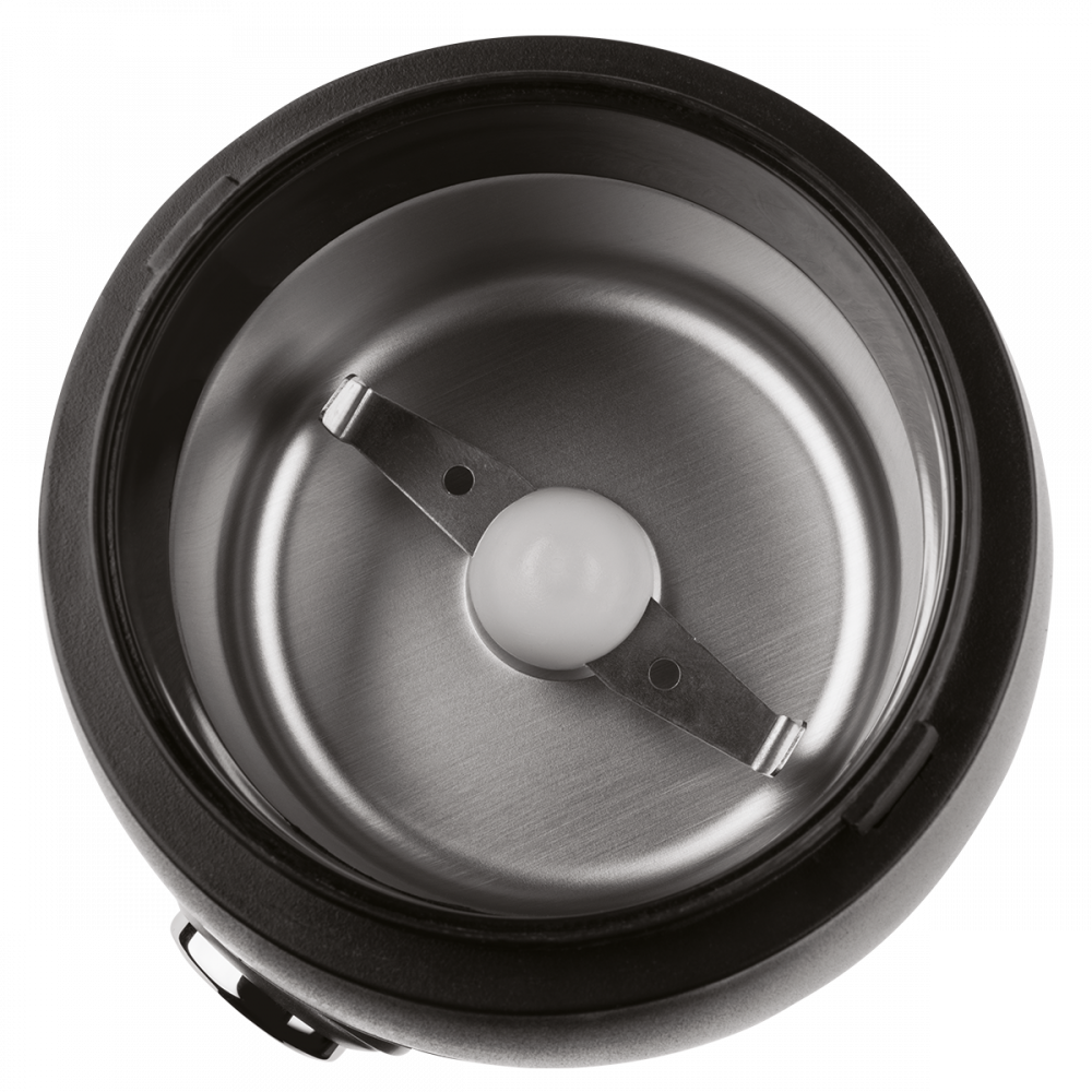 Потужність 150 Вт, місткість 70 г, імпульсний режим роботи, прозора кришка, корпус - нержавіюча сталь, леза - нержавіюча сталь, для перемелювання кавових зерен, спецій, прянощів, перцю, горіхів, круп, рису