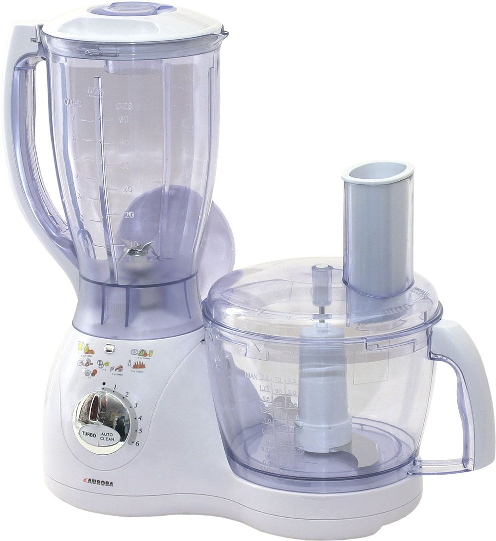 Кухонний комбайн Aurora AU-117, потужність 700 Вт, кількість швидкісних режимів 6, пульсовий режим роботи, пресс для цитрусових, соковитискач, комплектація: ножі 2 шт, насадка для пюре, тертки 2 шт, вінчик для кремів, обєм чаші блендера 2л, обєм чаші комбайна 2 л