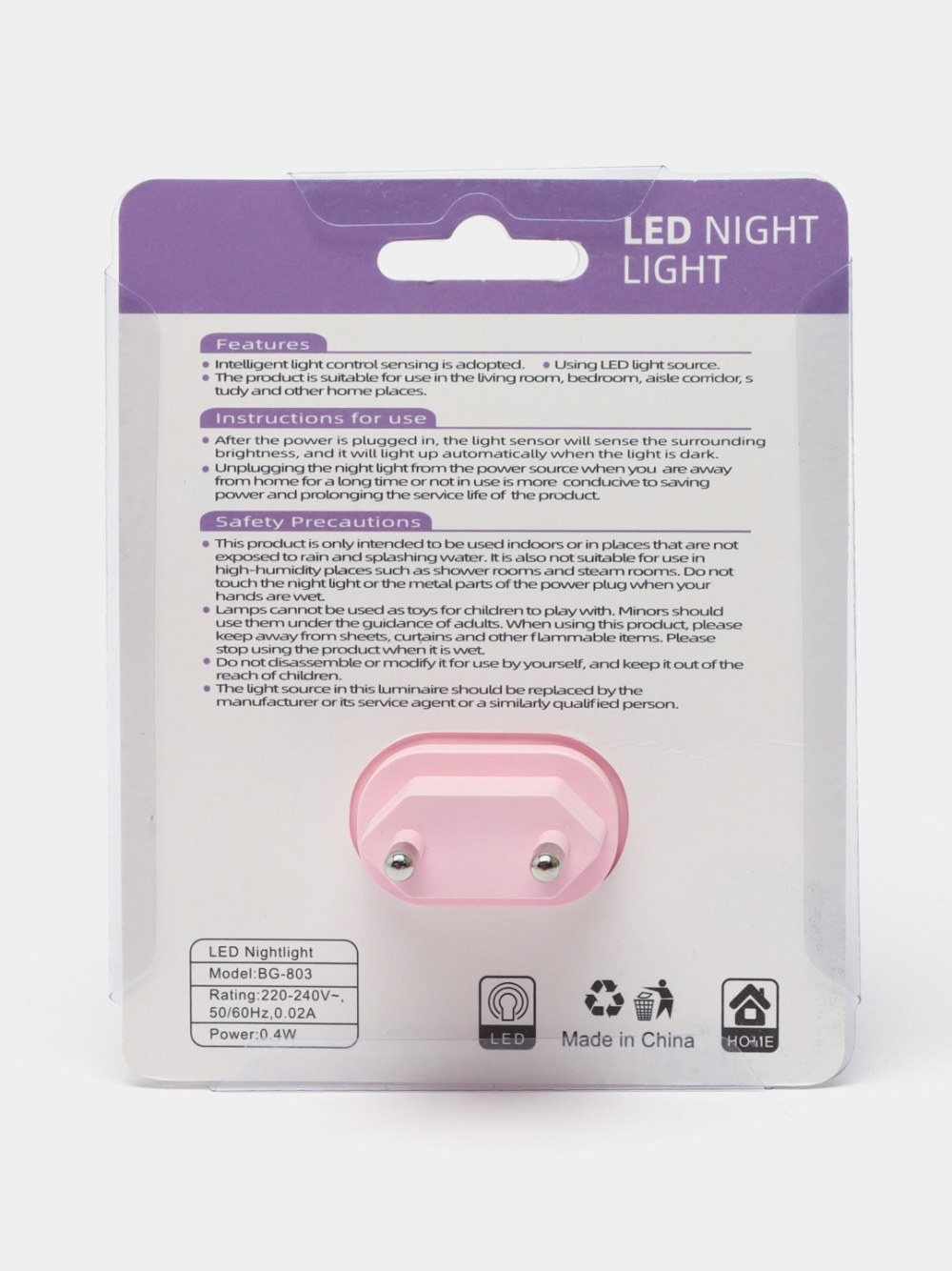 Опис Лампа нічник BG-803 (03) 0.4W Pink Purple