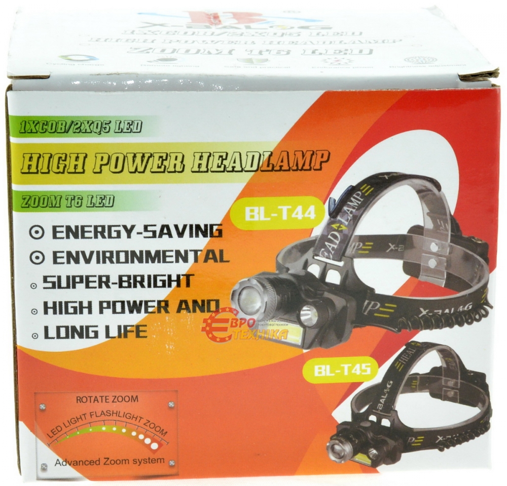 Тип світлодіодів: T6 LED, Q5 LED (2 шт), COB LED