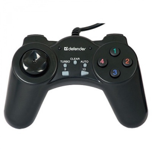 Геймпад Defender 64253, підключення дротове, USB, радіус дії 1.8 м, підтримка ОС Windows XP / Vista / 7, кількість кнопок 13, зворотній зв'язок вібраційний, аналогове управління, кнопки Turbo, Auto і Clear дозволяють максимально ефективно використовувати зброю в шутерах