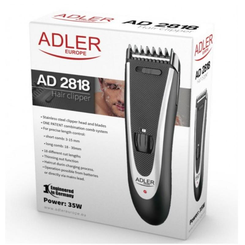 Для моделювання різних зачісок машинка для стрижки Adler AD 2818 укомплектована двома насадками з лезами, виготовленими з міцної нержавіючої сталі. З їх допомогою можна встановлювати довжину волосся від 3 мм до 30 мм.