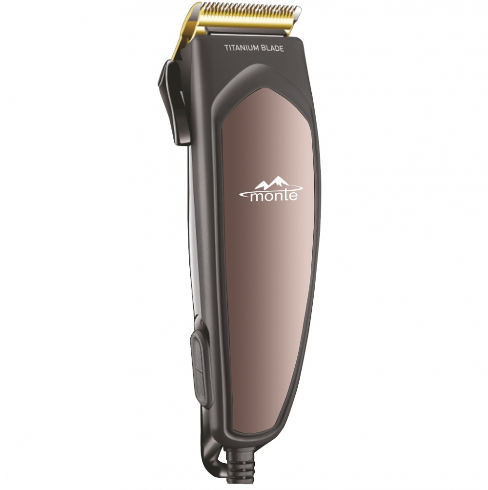 Питание від мережі, леза з титановим покриттям, потужність: 15 Вт, 4 насадки: 3 мм, 6 мм, 9 мм, 12 мм, захисний ковпачок на леза, ножиці, гребінець, щіточка для чистки, масло, довжина кабелю: 180 см