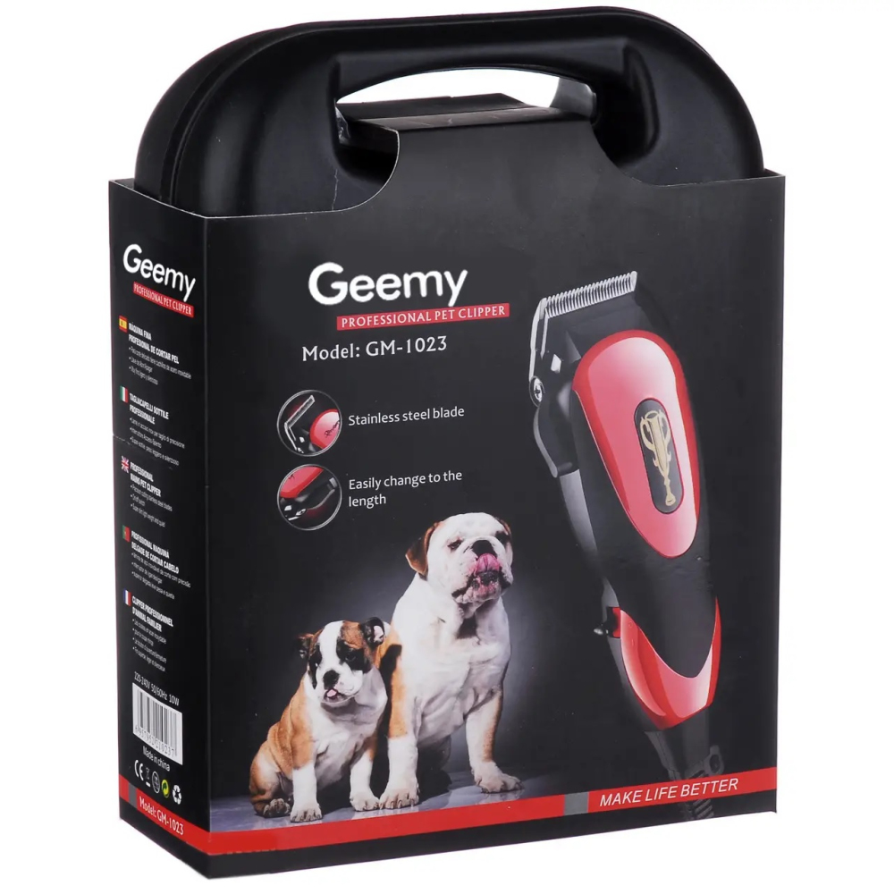 Відмінною особливістю машинки для стрижки тварин GM1023 є простота експлуатації. Довжина шнура досягає 240 см, що дозволяє перукарю з легкістю обійти вихованця з будь-якого боку. Пристрій працює від побутової електромережі на 220 В. Технологія лазерного заточування гарантує, що леза не затуплятимуться протягом тривалого періоду. При цьому їх можна легко почистити і замінити. Мотор потужністю 10 Вт дозволяє з легкістю впоратися з вовною будь-якого рівня жорсткості.