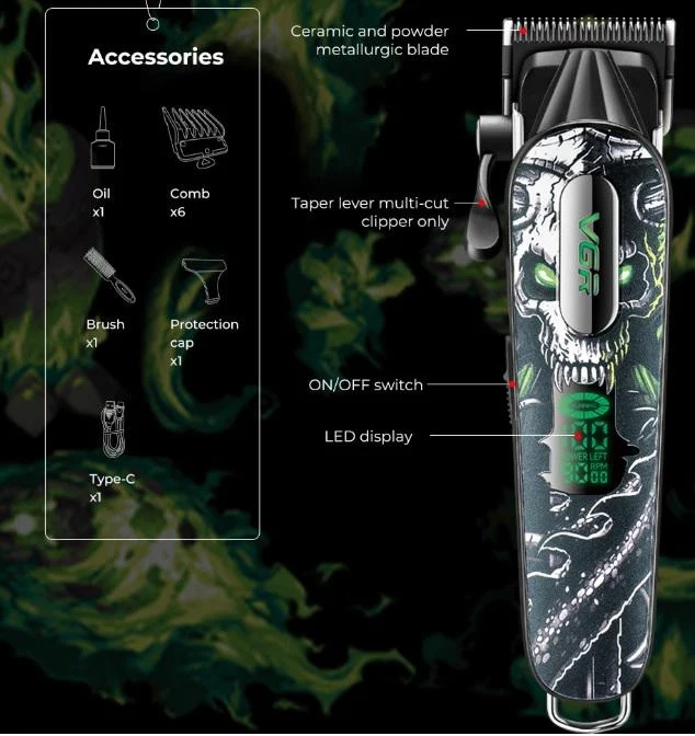 VGR V-279 Green — це багатофункціональна машинка для стрижки, яка поєднує сучасний дизайн, потужний роторний двигун і тривалу автономну роботу. Ідеально підходить для догляду за волоссям, бородою, вусами та навіть бровами.