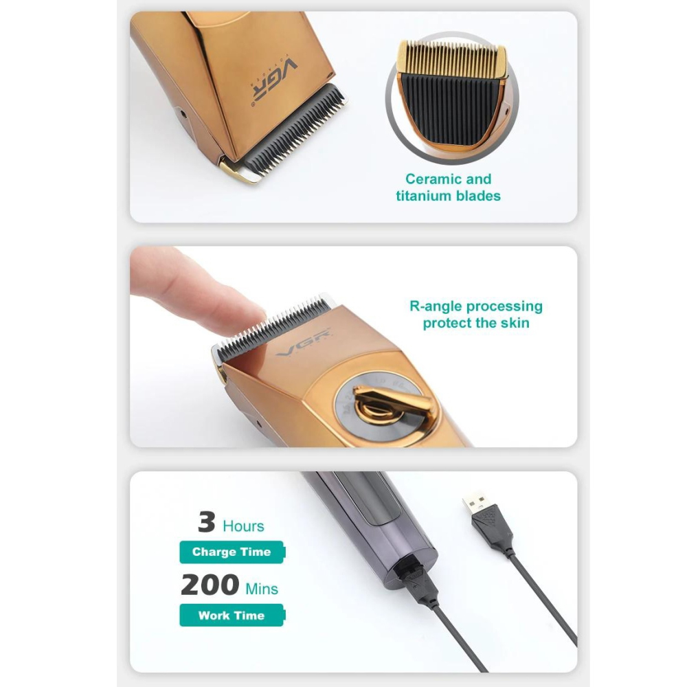 VGR V-663 - це бездротова акумуляторна машинка для стрижки волосся і бороди з футуристичним дизайном і фантастичною точністю зрізу. У машинці є все необхідне для ідеальної стрижки: ніж зі сталі шириною 45 мм і висотою зрізу 0.5 мм, літій-іонний акумулятор, збільшений час автономної роботи до 200 хвилин та LCD-дисплей.