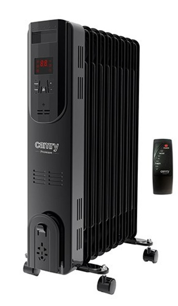 Потужний масляний радіатор з дистанційним керуванням та видимим світлодіодним дисплеєм. Дозволяє обігріти приміщення, де відсутні радіатори або вони недостатньо ефективні. Незамінний під час збою системи опалення. Радіатор дає можливість регулювати температуру в діапазоні 15°C - 35°C, працює на 3 рівнях потужності. Обігрівач автоматично налаштує споживання енергії відповідно до встановленої температури нагріву. Для безпеки використання пристрій оснащений захистом від перегріву. Радіатор виконаний в елегантній лінії, тому його можна розмістити в місці прийому гостей вдома або клієнтів в офісі. Пристрій має дистанційне керування. Версія CR 7810 має 9 нагрівальних ребер та потужність 2000 Вт.