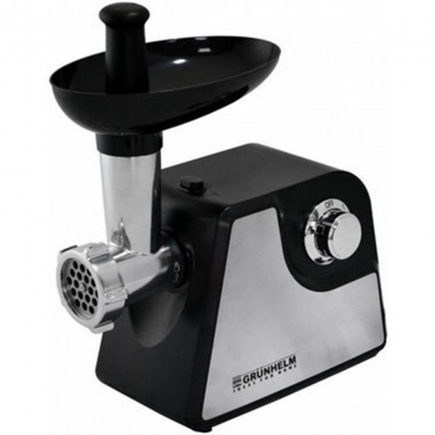Мясорубка Grunhelm AMG180SJ - проста компактна модель з ручкою і легка збірка, працює від одного натискання кнопки включення/вимикання/реверс.