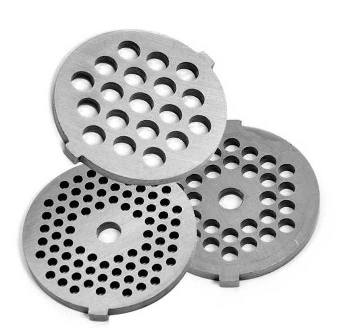 Потужність 2000 Вт, продуктивність 1,5 кг/хв, алюмінієві лоток для м'яса, головка корпусу та шнек з алюмінію. Функція реверс, три перфорованих диска для фаршу різної консистенції (3мм, 5мм, 7мм), насадка "Кеббе", насадка для ковбасок, штовхач.