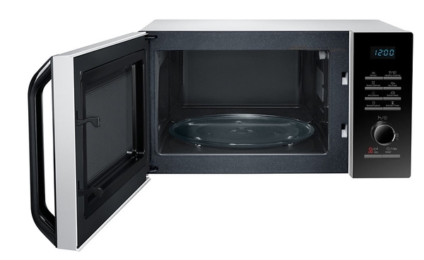 Нова піч Samsung MS23H3115FW з елегантним преміальним дизайном прикрасить будь-яку сучасну кухню. Прозора чорна ручка і поворотний перемикач з дизайном Crystal Gloss надає печі елегантний вигляд. Яскравий дисплей синього світіння підсвічує опції меню та годинник, що полегшує вибір налаштувань та управління режимами печі.