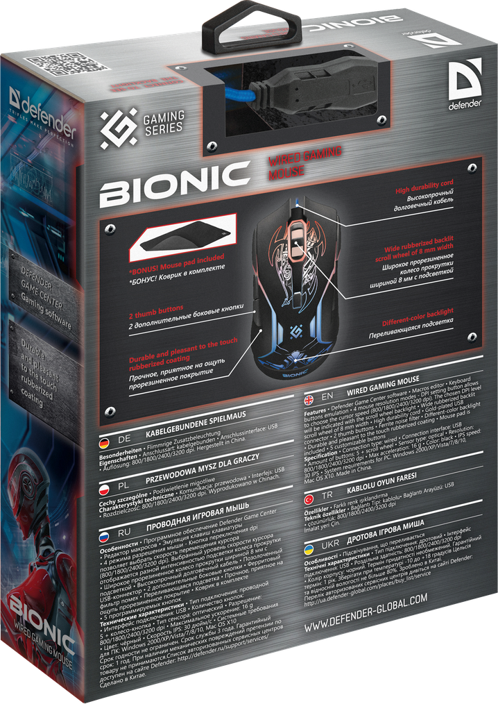 Характеристики Миша Defender Bionic GM-250L (52250)