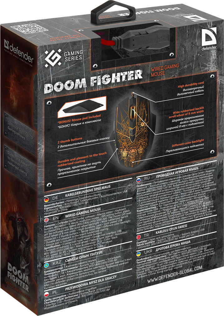 Характеристики Миша Defender Doom Fighter GM-260L Gaming