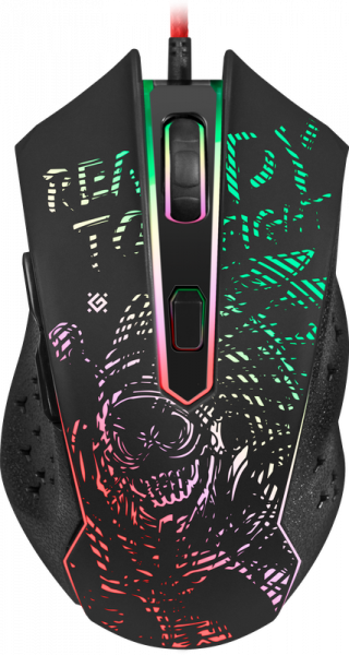 Ігрова миша з високоточним сенсором, п'ятьма програмованими кнопками та чотирма режимами роздільної здатності. Редактор макросів і спеціальне програмне забезпечення Defender Game Center для прогресивних гравців. Яскрава підсвітка, що переливається, незвичайний малюнок.
