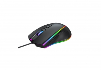 Мишка Havit HV-MS1017, ігрова, 6400dpi., 6кн., RGB чорна (26478) Переваги: 7 програмованих кнопок з налаштуванням власних макросів 6 переналаштувань чутливості в діапазоні 800 - 6400 DPI команд комп'ютера. Зносостійкий і довгий (1,5 м) кабель для зручного підключення до комп'ютера Ергономічна форма для зручності використання девайса протягом тривалого часу Розрахункове робоче навантаження в 5 000 000 натискань