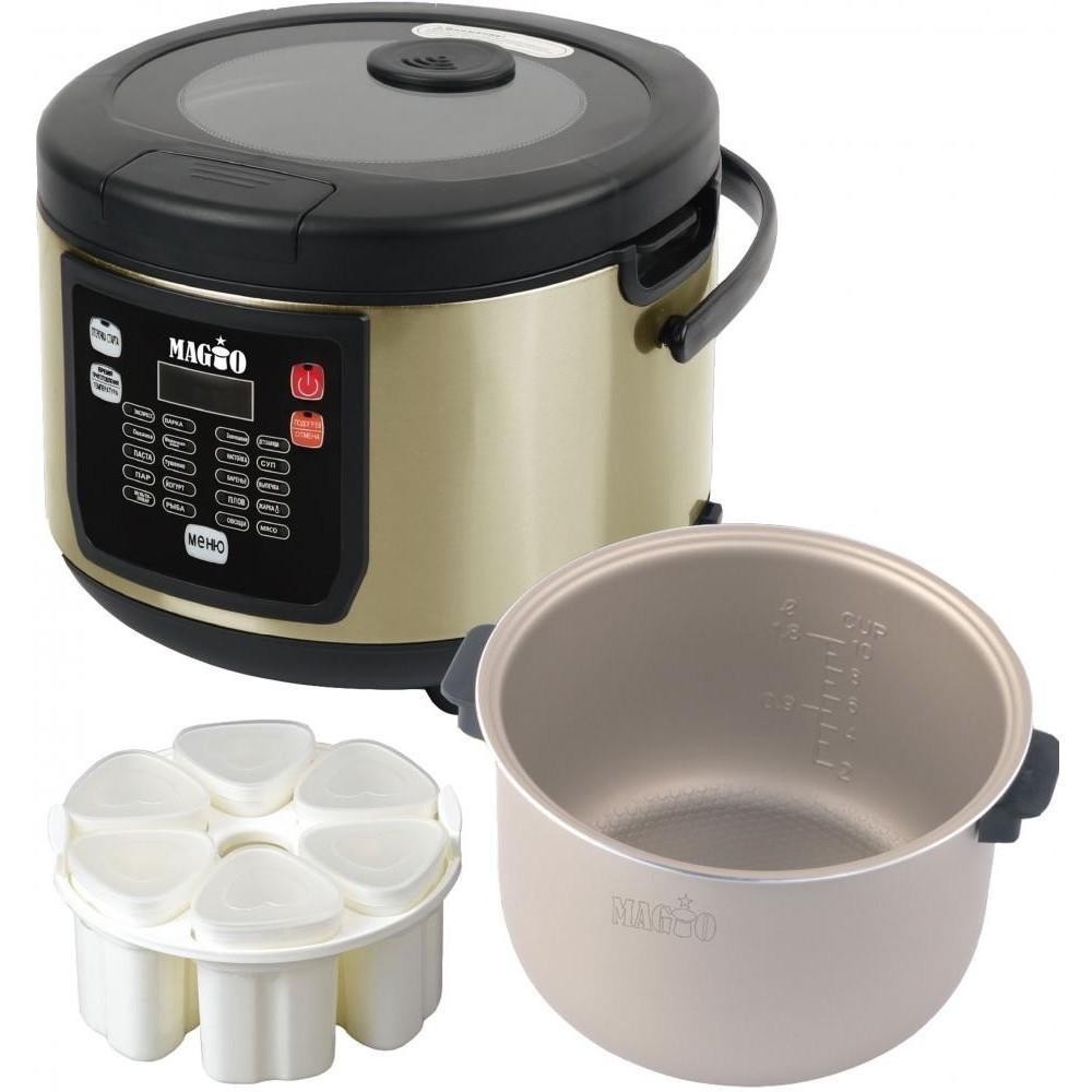 Потужніть 860 Вт, об'єм чаші на 5 л, 20 програм: експрес, варіння, молочна каша, вівсянка, випічка, паста, тушкування, йогурт, риба, овочі, м'ясо, запікання, дитяча їжа, настоянка, варення, плов, смаження, суп, пар, мультиповар, електронне управління, функція підтримки температури, відкладеного старту, прозора кришка з термостійкого скла, стаканчики для приготування йогурту.