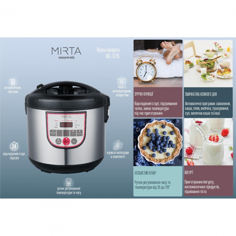 Мультиварка Mirta MC-2215 дозволить вам радувати родину смачними стравами щодня, не витрачаючи на це багато часу.
