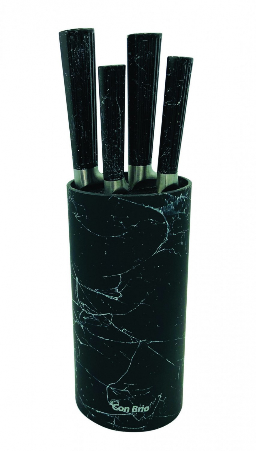Набір ножів із 5 предметів: ніж кухарський, довжина леза 20,2 см, ніж обробний, довжина леза 20 см, ніж універсальний, довжина леза 12,5 см, ніж для чищення овочів, довжина леза 8,5 см, підставка для ножів