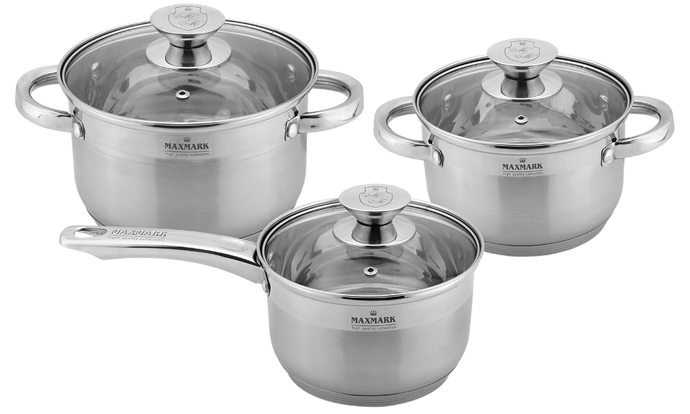 Набір посуду Maxmark виготовлений із високоякісної неіржавкої сталі, що сприяє швидкому та рівномірному розподілу тепла, а також дає змогу скоротити витрату енергії під час приготування їжі. Неіржавка сталь має високі показники екологічної чистоти, що дає змогу у процесі приготування їжі максимально зберегти вітаміни та мінеральні речовини в продуктах.