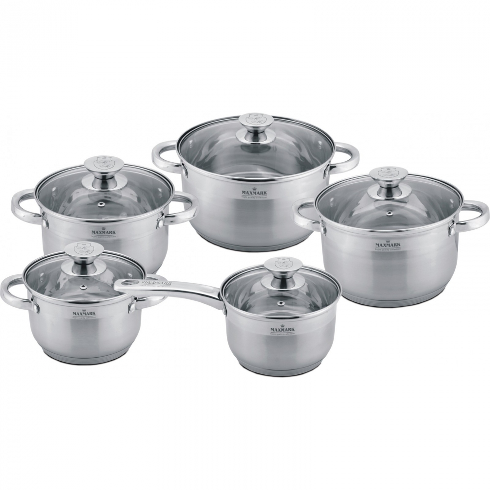 Набір посуду Maxmark виготовлений із високоякісної неіржавкої сталі, що сприяє швидкому та рівномірному розподілу тепла, а також дає змогу скоротити витрату енергії під час приготування їжі. Неіржавка сталь має високі показники екологічної чистоти, що дає змогу у процесі приготування їжі максимально зберегти вітаміни та мінеральні речовини в продуктах.