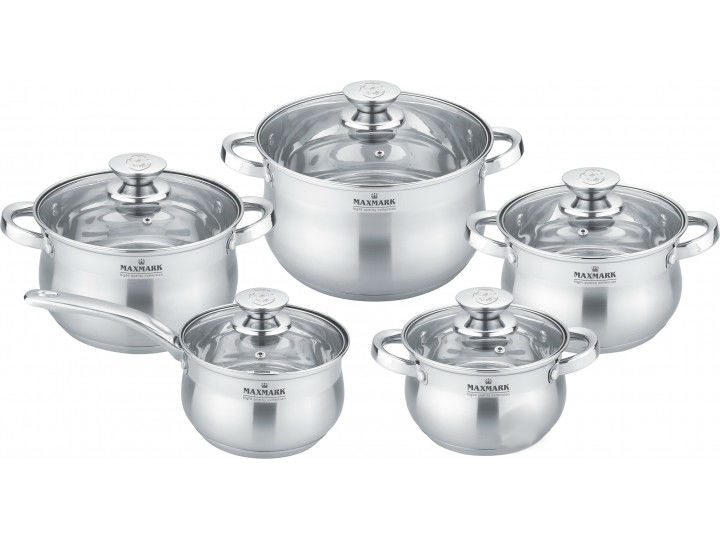 Набір посуду Maxmark виготовлений із високоякісної неіржавкої сталі, що сприяє швидкому та рівномірному розподілу тепла, а також дає змогу скоротити витрату енергії під час приготування їжі. Неіржавка сталь має високі показники екологічної чистоти, що дає змогу у процесі приготування їжі максимально зберегти вітаміни та мінеральні речовини в продуктах.