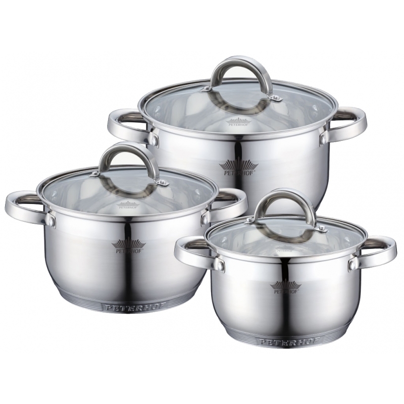 Набір посуду з 6 предметів: каструля з кришкою 16 см на 2,1 л, каструля з кришкою 18 см на 2,9 л, каструля з кришкою 20 см на 3,9 л.