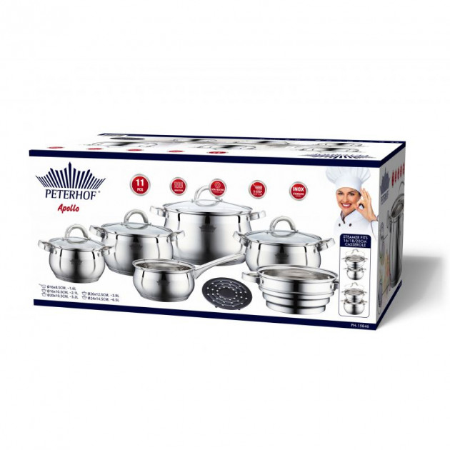 Набір посуду Peterhof - це набір високоякісного посуду з нержавіючої сталі, що не окислюється і не вступає в реакцію з їжею.