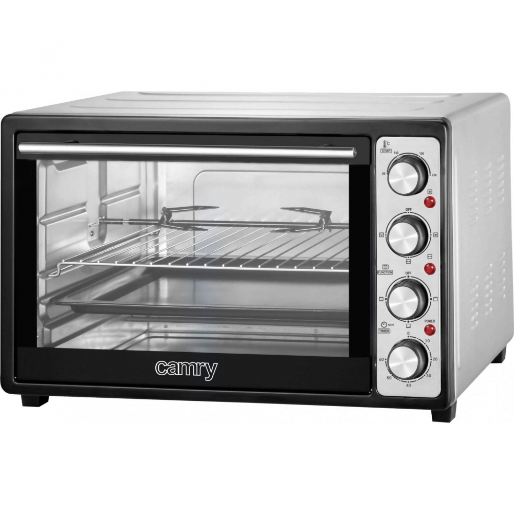 Електрична піч Camry CR 111 виготовлена із нержавіючої сталі. Об'єм духовки складає 45 літрів, тобто ви зможете готувати в ній для великої сім'ї чи свята.