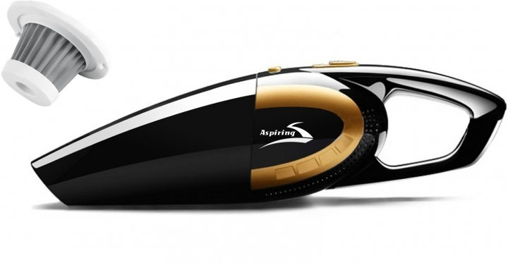 Автомобільний пилосос Aspiring Dust 2 має високу потужність всмоктування, тому може збирати як сухе сміття, так і рідини (краплі води). Основна особливість – можливість підзарядки батареї від будь-якого адаптера або автономна робота від автомобільної зарядки, яка йде в комплекті! У комплекті йде два фільтри – циклонний металевий HEPA та HEPA з целюлози.