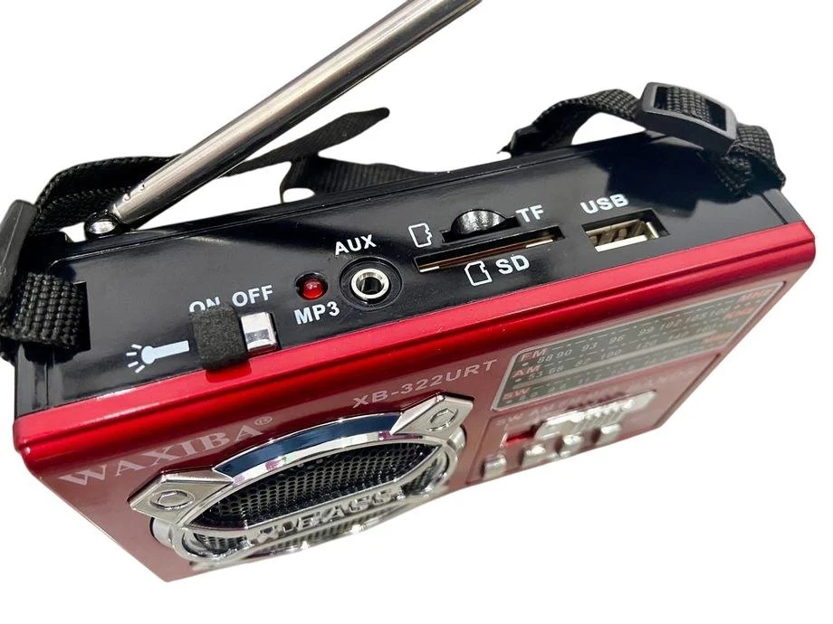 AM/FM/SW приймач, живлення від акумулятора , ручка для транспортування, LED - ліхтар, роз'єми: USB, SD, microSD.