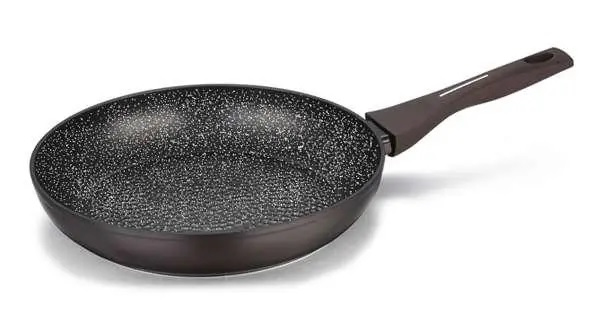 Розмір: Ø28 см, глибина 5,4 см, матеріал корпусу: алюміній, антипригарне покриття: граніт, покриття ручки: прогумована термостійка ручка Soft Touch, можна мити в посудомийній машині. Індукційне дно дозволяє використовувати сковороду на всіх типах плит.