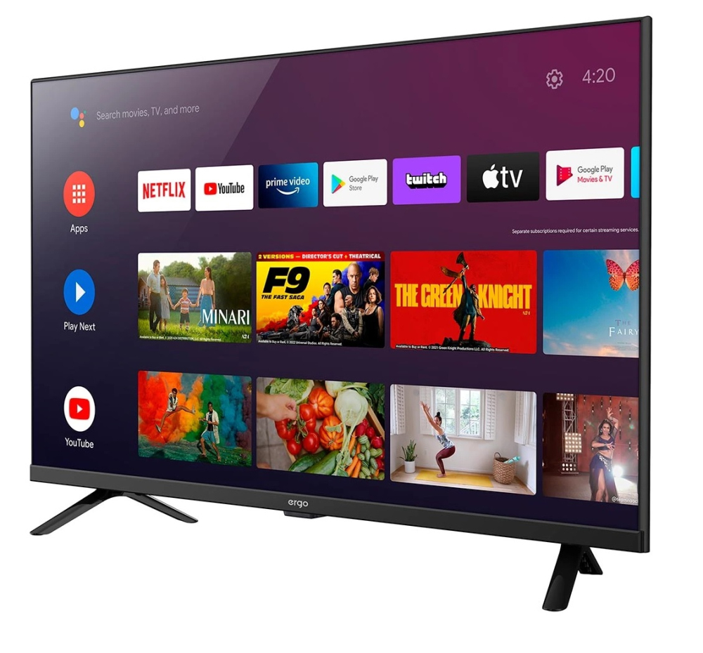 Ergo пропонує широкий вибір LED телевізорів, повний набір аналогових та цифрових вхідних та вихідних інтерфейсів забезпечує можливість підключення додаткових мультимедійних пристроїв. Вбудований ТВ тюнер і функція Smart TV урізноманітнять ваше дозвілля і подарують необмежені можливості у поєднанні з неймовірною якістю трансляції. Офіційна та найпопулярніша операційна система у світі від Google вже у вашому телевізорі ERGO. Безмежні можливості з перегляду світових стрімінгових сервісів, найновіші прем'єри, музика, ігри та мандрівки в інтернеті на кнопці вашого пульта. Миттєво транслюйте зображення зі свого смарт-пристрою на великий екран телевізора: це може бути сімейний перегляд вашого фотоархіву або улюблене відео