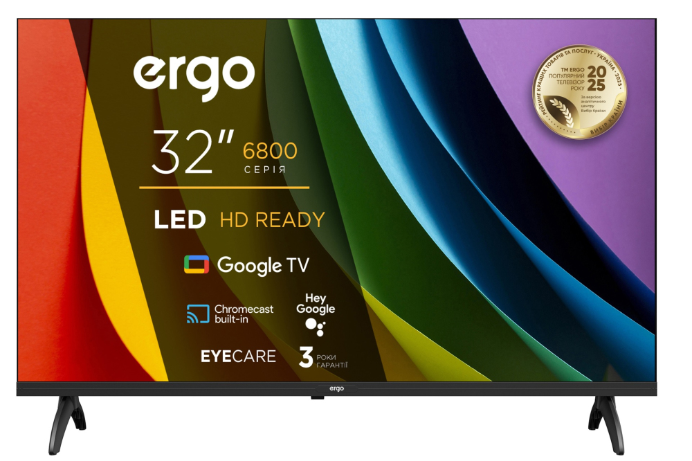 LED телевізор - діагональ 32", роздільна здатність 1366 х 768 (HD), операційна система: Google TV, Bluetooth, Wi-Fi, з підтримкою Smart TV, вбудована пам'ять: 8 Гб, оперативна пам'ять: 1 Гб. Тип тюнера: DVB-T, DVB-T2, DVB-C, DVB-S, DVB-S2, Аналоговий. Розєми : USB, LAN, HDMI, Роз'єм 3,5 мм, CI. Настінне кріплення VESA: 200x100 мм. Сумарна потужність звуку 20 Вт. Гарантійний термін 3 роки.