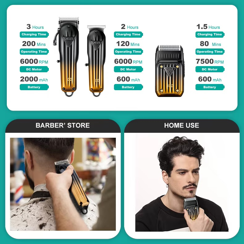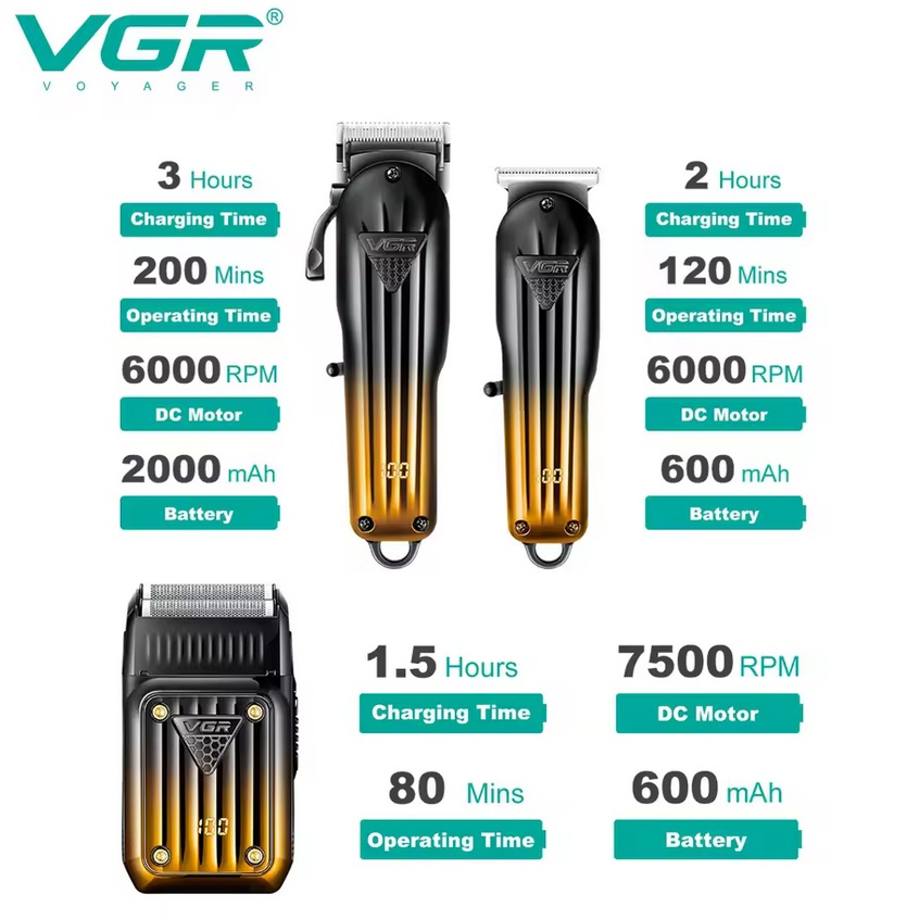 Комплект VGR 3 в 1 V-644 - це універсальне рішення для чоловіків, що поєднує машинку для стрижки, триммер та електробритву. Він ідеально підходить як для професійного, так і для домашнього використання, забезпечуючи повний догляд за волоссям, бородою та шкірою обличчя.