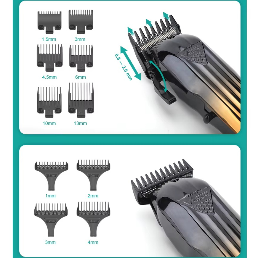 - 6 насадок для машинки: 1.5, 3, 4.5, 6, 10, 13 мм