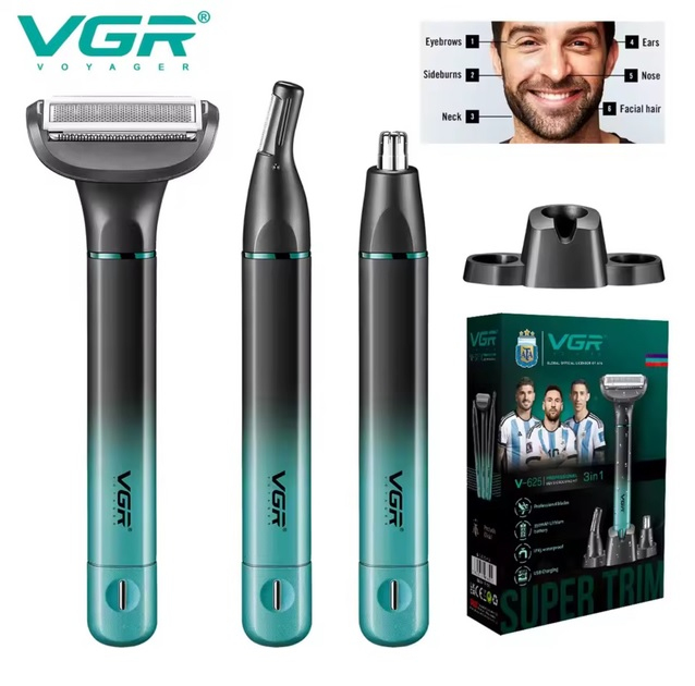 Тример VGR – це універсальне рішення для чоловіків, що забезпечує ефективний догляд за тілом, носом, вухами та бровами. Обладнаний професійними лезами, він гарантує точне та комфортне підрівнювання.